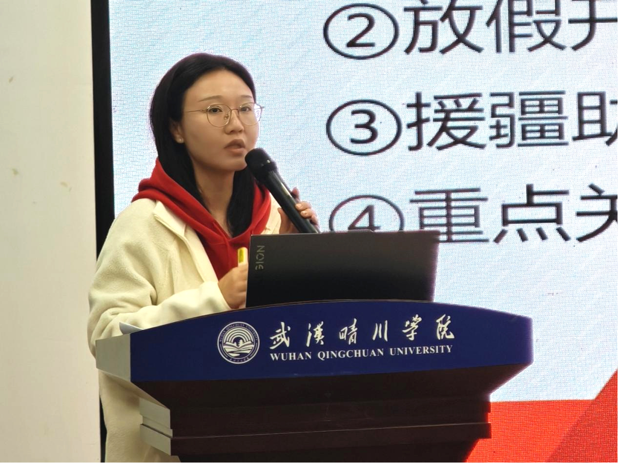 随后,学工处田知灵老师就我校少数民族工作的具体内容与注意事项进行详细介绍。她分享了我校通过举办座谈会、演讲比赛、主题班会等活动开展铸牢中华民族共同体意识教育的实践经验,并就日常工作中的信息报送和制度完善等进行了详细说明,为辅导员提供了具体的工作指引。