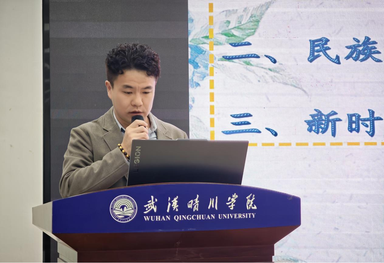 在学习分享环节,外国语学院向衷正老师围绕“铸牢中华民族共同体意识的意义”“如何正确看待民族问题与民族工作”以及“新时代民族工作怎么干”三个方面,带领全体参会人员深入学习了习近平总书记关于民族工作的重要讲话精神。他结合自身学习体会指出,民族工作本质上是做人的工作,贵在平时,重在交心。