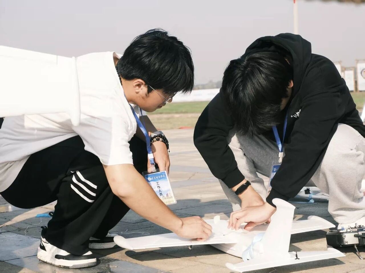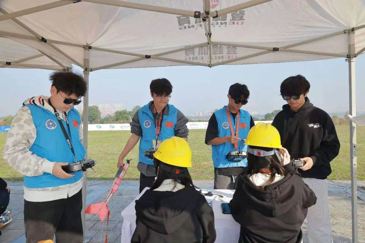赛场之上,无人机如雏鹰振翅,穿梭于空域之间。我校学子沉着操控,精准锁定敌机彩带,咬尾追击、机动规避等一系列高难度动作行云流水。