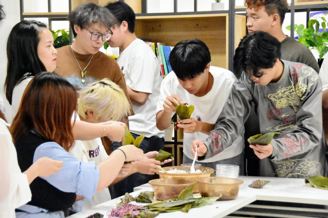 为传承中华优秀传统文化,丰富校园文化生活,2025年5月30日中午,在端午节来临之际,我校学生工作处在“一站式”学生社区服务中心开展了别具韵味的端午节文化体验活动,师生们齐聚一堂,通过亲手包粽子、体验书法艺术,感受端午节日氛围。