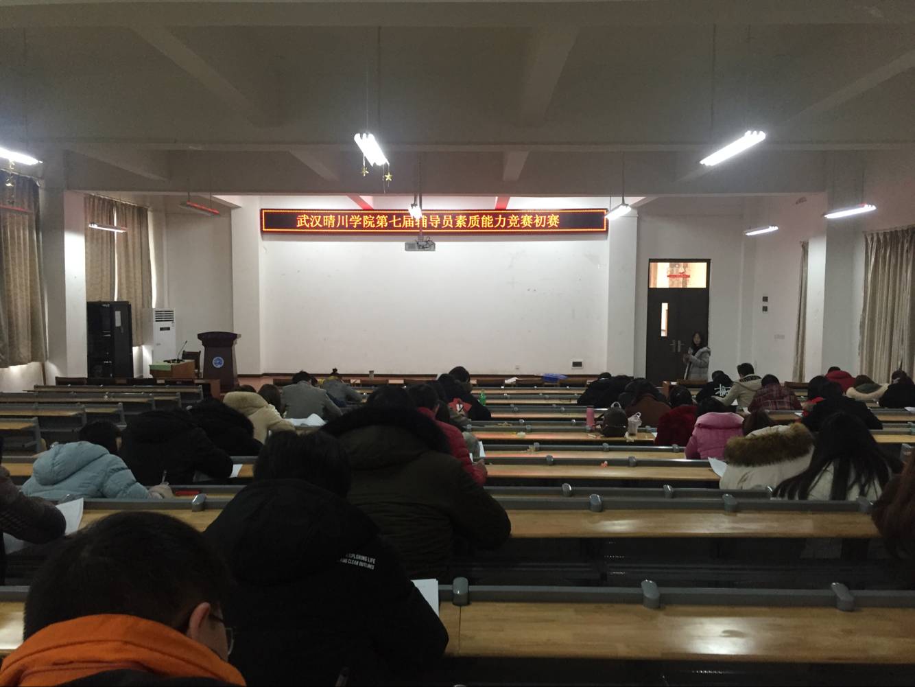 2月25日上午9:30分,我校第七届辅导员素质能力大赛初赛在综二105报告厅进行,全校专兼职辅导员(含团总支书记)共计49人参赛。本次竞赛初赛采取的是闭卷书面考试形式,考试内容主要涉及学生事务、思政教育、理论知识、案例分析、主题班会、博文写作等内容。经阅卷评分,得分前20名老师将进入复赛。