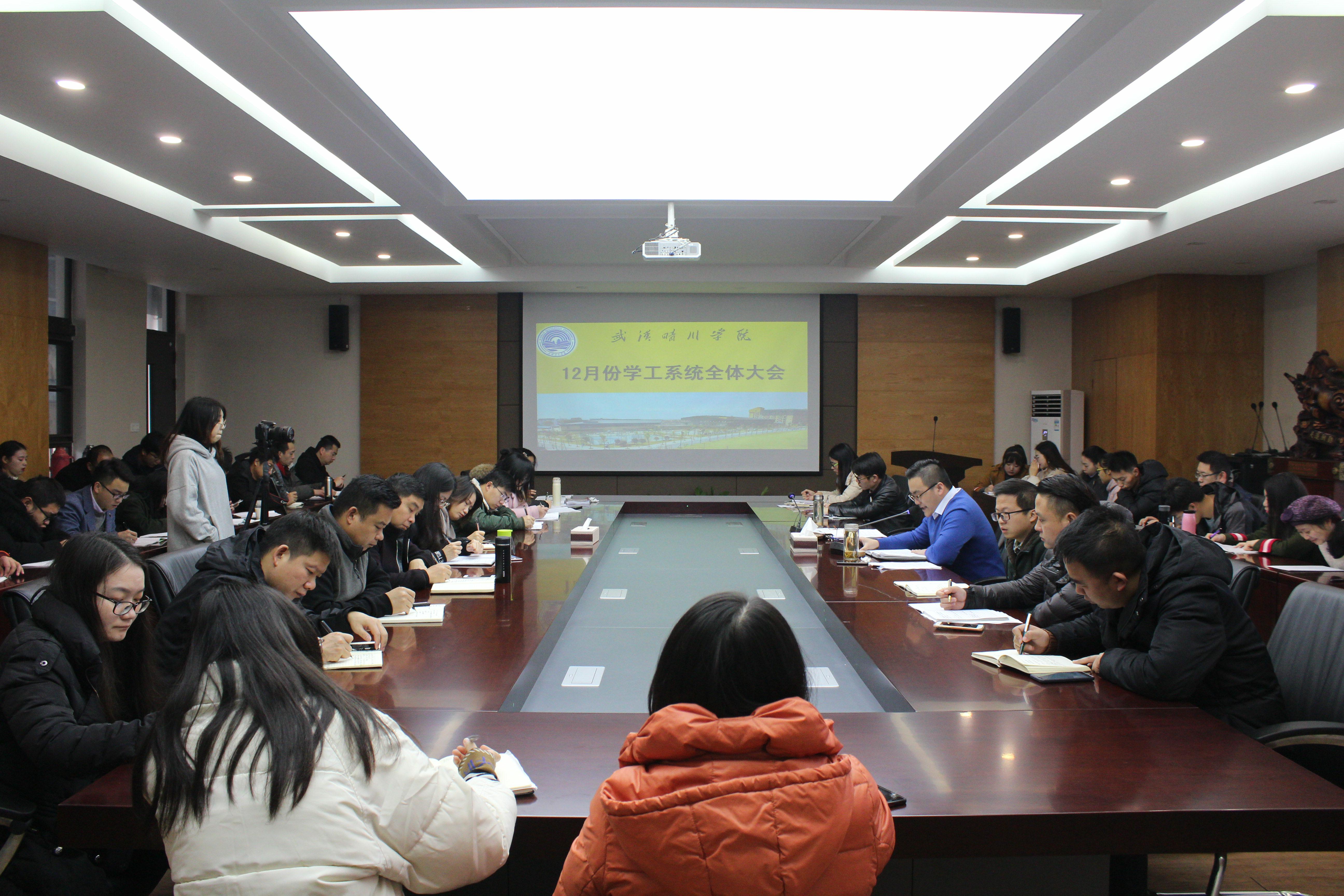 12月20日上午,我校在综一414会议室召开12月份学工系统全体大会,校领导张克华、学工处各职能科室、直属单位负责人,各二级学院党总支(副)书记、团总支书记以及全体辅导员老师参加会议,会议由学工处处长刘泽政主持。
