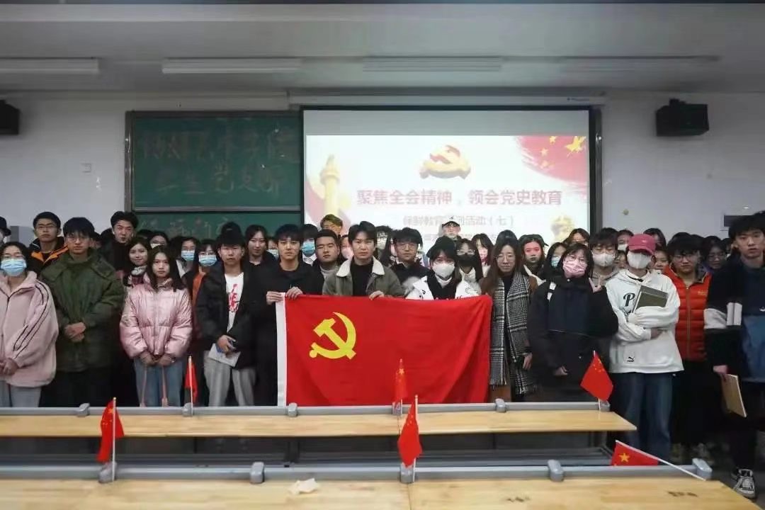 12月13日,传媒艺术学院在教1-210开展第七次“保鲜教育”系列主题活动。会议伊始,主题活动组的包豫临同志从会议概况、会议内容和未来展望三个方面带领全体同志学习全会精神。接着日常工作组的王婷婷同志阐述了马克思主义作为立党立国根本指导思想的重大意义,对用马克思主义中国化最新成果武装头脑、指导实践、推动工作作出系统论述。最后,行政管理组的黄雨晴同志表示:“作为青年要把青春奋斗融入党和人民事业,让自己成为实现中华民族伟大复兴的先锋力量。”