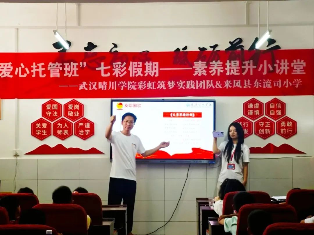 七月的晨光为东流司小学披上一层金色,香樟树梢的蝉鸣与乡间微风交织,传递着孩子们对知识的渴望。操场上,彩虹筑梦实践团队的旗帜与五星红旗在风中交相辉映。值此七七事变88周年暨世界反法西斯战争胜利80周年之际,一场意义深远的纪念活动在这片阳光普照的土地上展开,旨在将历史的种子播撒于少年心田。
