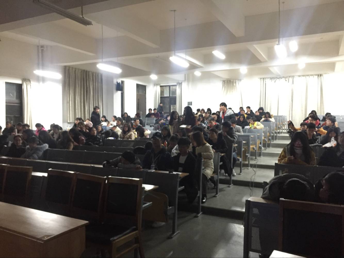 12月15日,武汉晴川学院青媒观影室在学术报告厅进行了首次电影公映,院线同步,大幕放映。在校学生通过校内微信公众平台获取观影券,持学生证现场验证兑票。在电影公映期间,整个会场观影氛围浓浓,现场秩序良好。