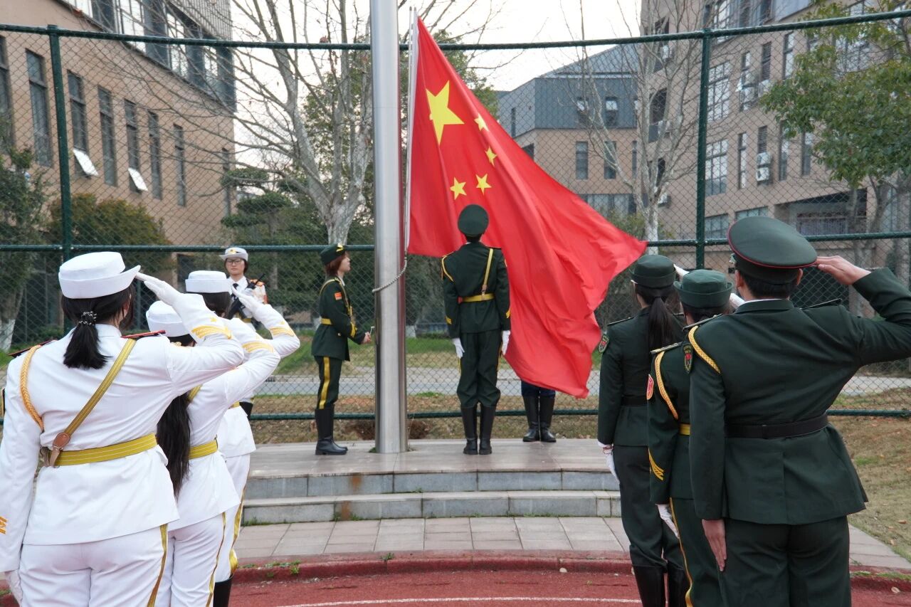 活动伊始,国旗护卫队迈着矫健整齐、铿锵有力的步伐护送国旗入场。伴随着激昂的国歌声,五星红旗冉冉升起,迎风飘扬。全体师生行注目礼,现场庄严肃穆。