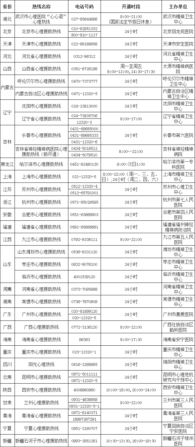 另附:全国心理援助热线,大家也可以随时致电咨询。