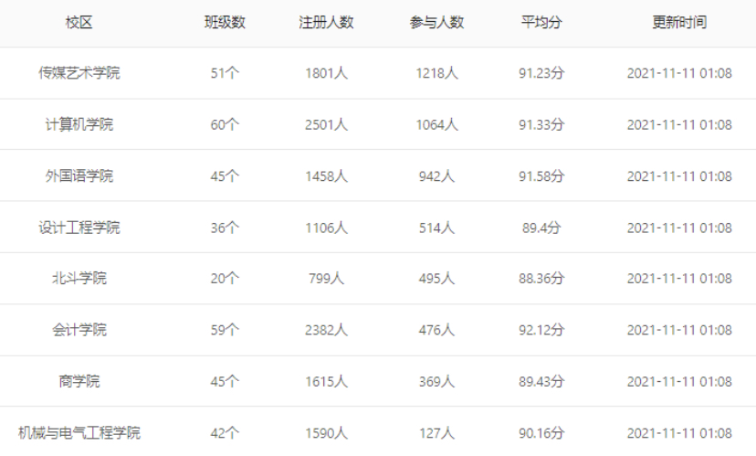 本次线上学习要求达到全员全覆盖,现将截止至2021年11月11日01:08各学院开展情况公示如下: