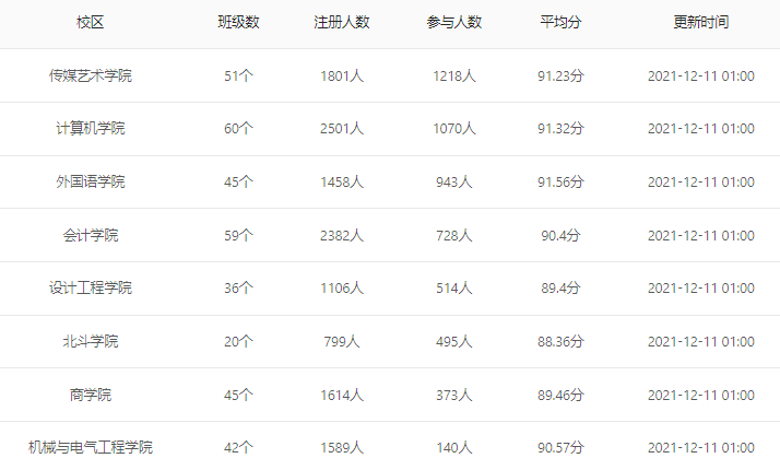 现将截止至2021年12月11日01:00各学院开展情况公示如下: