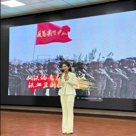 他结合学校“克难奋进,仁爱天下”的晴川精神,向全体晴川学子提出了三点希望:一是要将“家国情怀”深植血脉。 要时刻牢记历史,居安思危,将个人的前途命运与国家安危紧密相连;二是要将“爱国之心”化为报国之行。 不仅要通过演讲表达爱国之情,更要通过刻苦学习、投身军营等实际行动践行报国之志;三是要让“戎装领航”成为青春时尚。 他鼓励广大青年学子积极响应祖国号召,踊跃报名参军,让“青春荣光,戎装领航”成为晴川校园最亮丽的风景线。